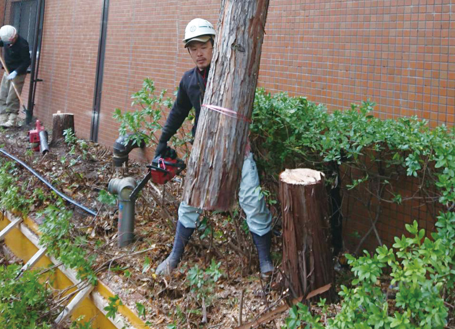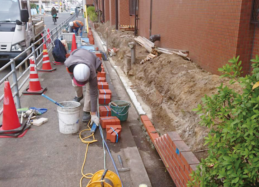 大阪府にて植木の伐採と、レンガ花壇の解体と新たなレンガ花壇の作成を行いました。 今回は伐採から、レンガ花壇の解体~作成までを①としてご紹介致します。(②では作成後~仕上げをご紹介予定です) 植木が大きくなり、植木の根でレンガを押してきたのでレンガ花壇が傾きました。 そこで 植木(くすの木、ひのきなど)を伐採、その後レンガ花壇を解体し新たにレンガ花壇を作りました。