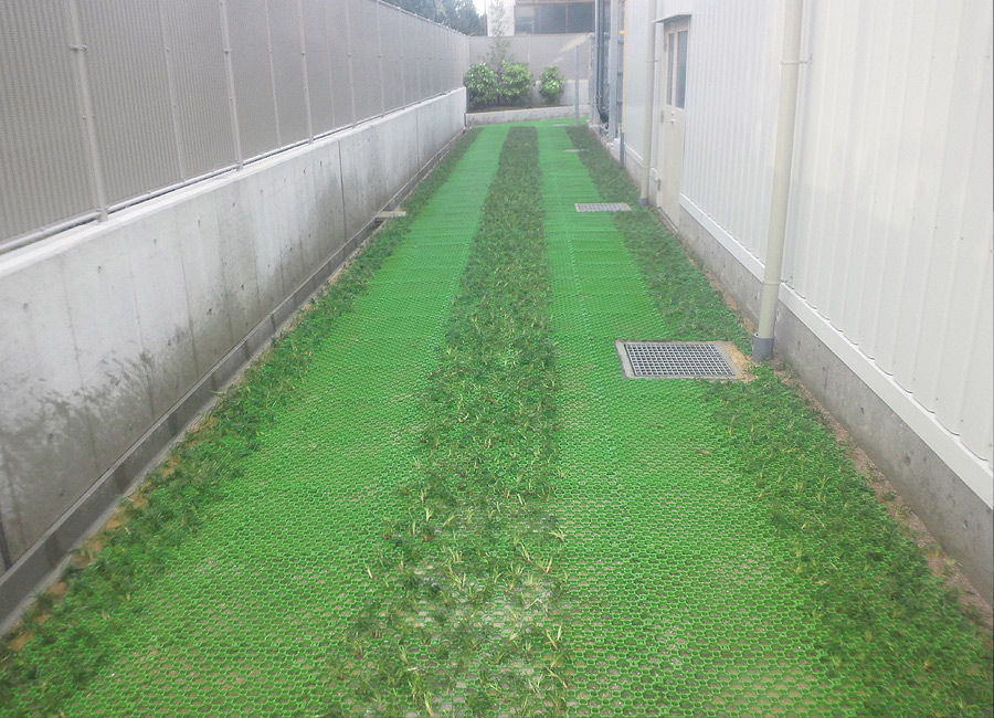 駐車場に芝生を張り、駐車場の緑化を致しました。