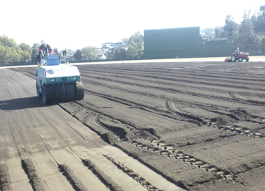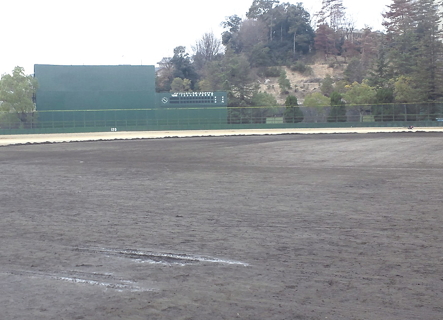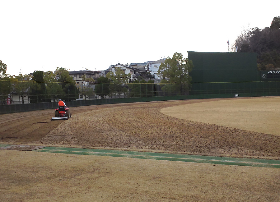 グランド全体を一度ほぐし、新たに黒土を追加し整備致しました。