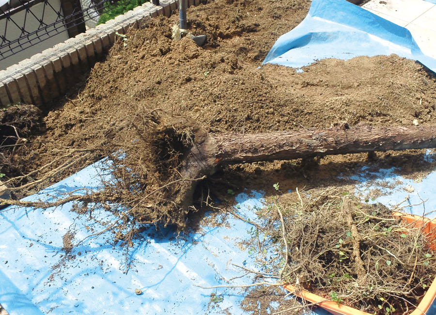 宝塚市の個人様宅にて、ゴールドクレストが強風により倒れてしまいそうになってしまった為、 ご依頼をいただき、やむなく伐採・伐根(ばっこん)致しました。