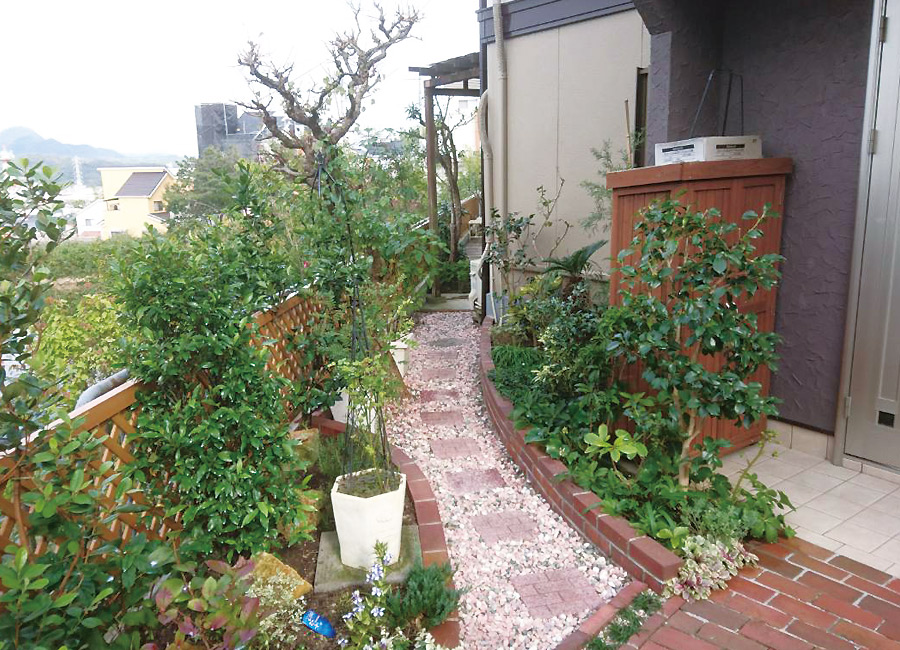 三田市の個人様宅にて行いました剪定例をご紹介致します。 今回は1年前に植栽させていただいたお庭(施工例はこちら)のお手入れをご依頼いただきました。 木樹はよく成長していて、剪定を施し綺麗なお庭になりました。
