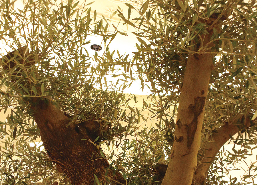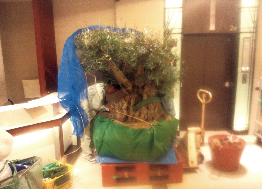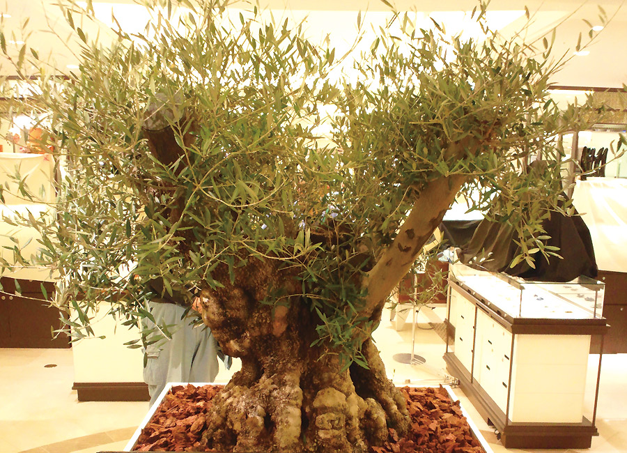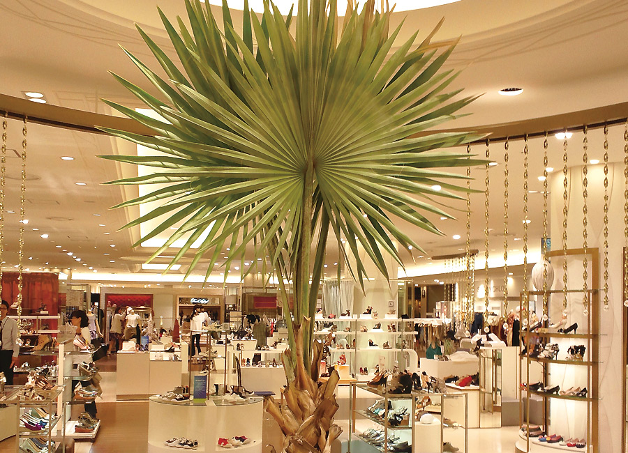 某百貨店にてイベント装飾の写真です。 推定樹齢200年と言うオリーブの木やビスマルキアノビリス、ハシラサボテン等を装飾しました。