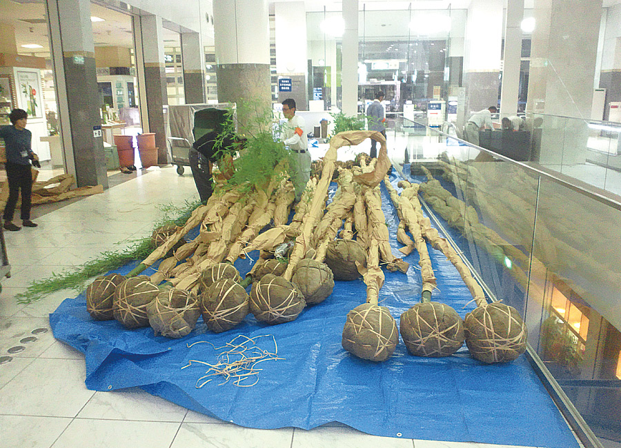 京都府の某百貨店にてイベント装飾の写真です。 これからの季節の、夏らしく竹で装飾されています。 七夕もあり、浴衣がよく売れるような店舗装飾になっています。